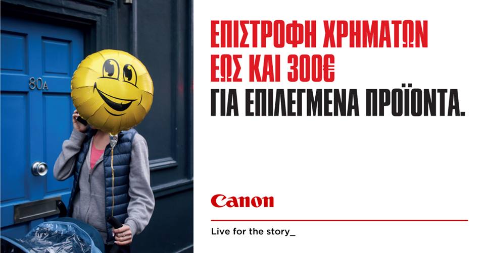 ΜΕ ΕΠΙΣΤΡΟΦΗ ΧΡΗΜΑΤΩΝ ΕΩΣ 300 ΕΥΡΩ για επιλεγμένα προϊόντα Canon έως τις 31/1/2019, κάνε περισσότερα σ’ αυτές τις διακοπές! Δες τα προϊόντα και τους συνεργάτες που συμμετέχουν στην ενέργεια και τους όρους και προϋποθέσεις εδώ:https://www.canon.gr/cashback/ Επιλέξιμα προϊόντα Αγοράστε οποιοδήποτε από αυτά τα προϊόντα μεταξύ 15 Νοεμβρίου 2018 και 31 Ιανουαρίου 2019 από συμμετέχοντα σημεία λιανικής πώλησης και ζητήστε την επιστροφή … Read More